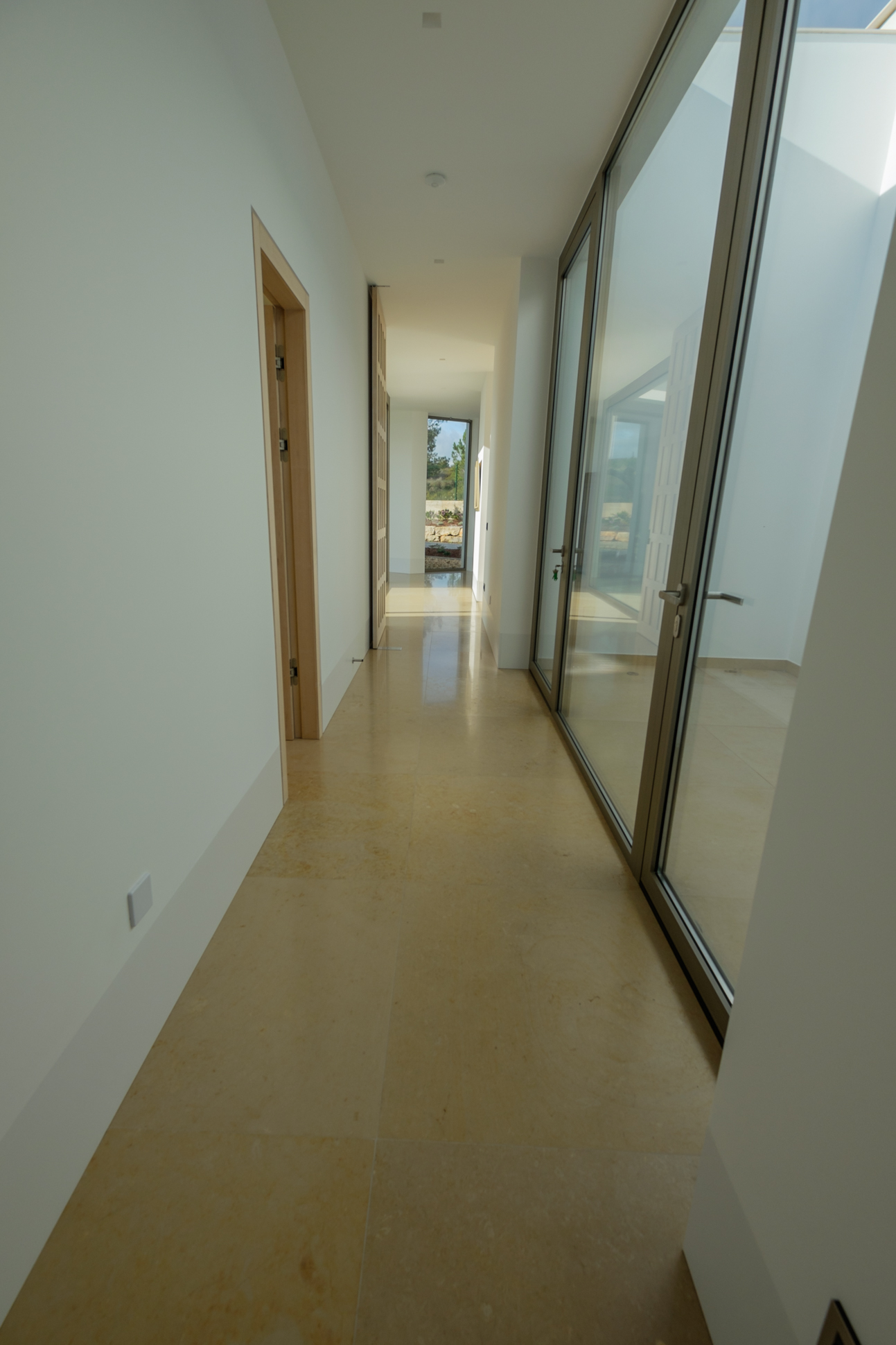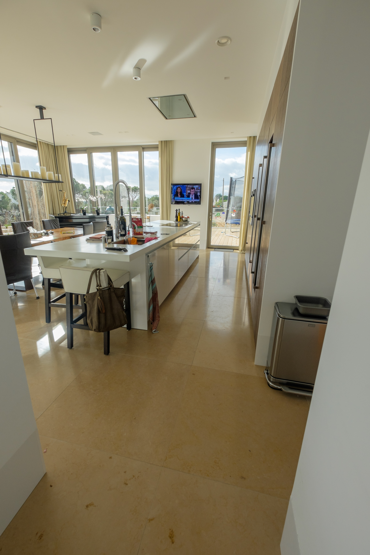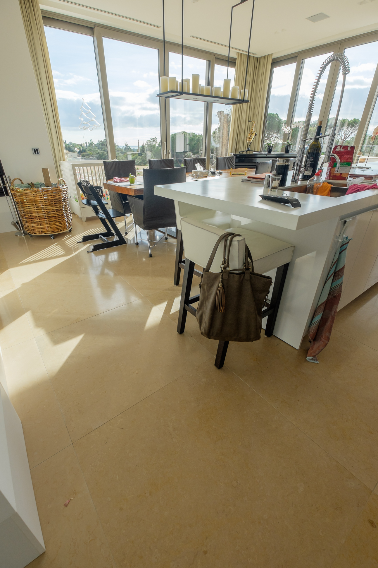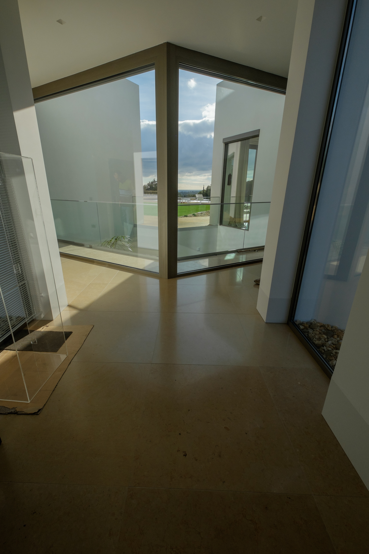 Ataija Coffee: a darker Ataija Cream. Limestone of high rigidity. For this project in the Algarve, we used flooring tiles of 900x900x20mm Honed finish.
