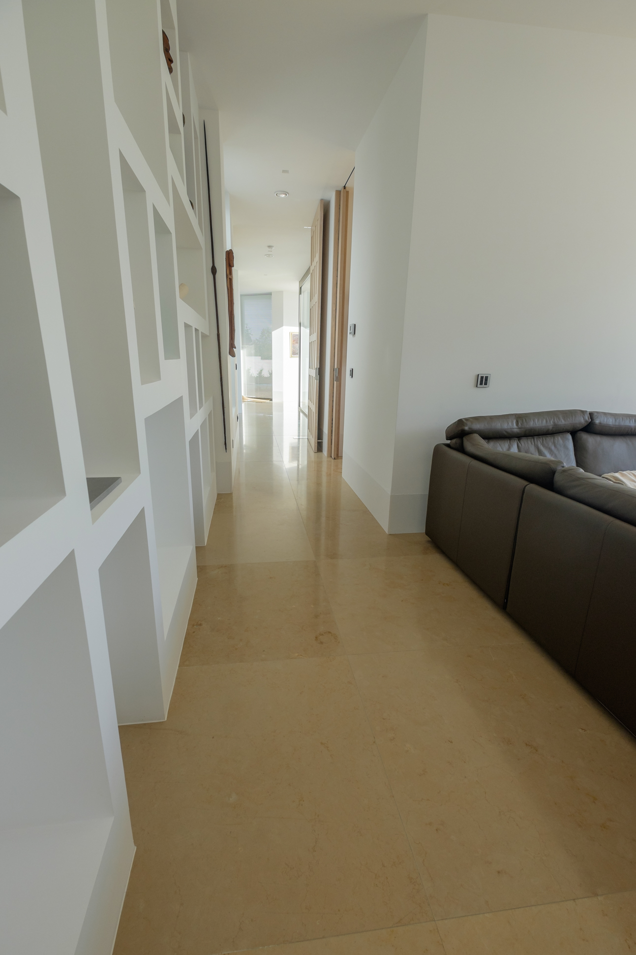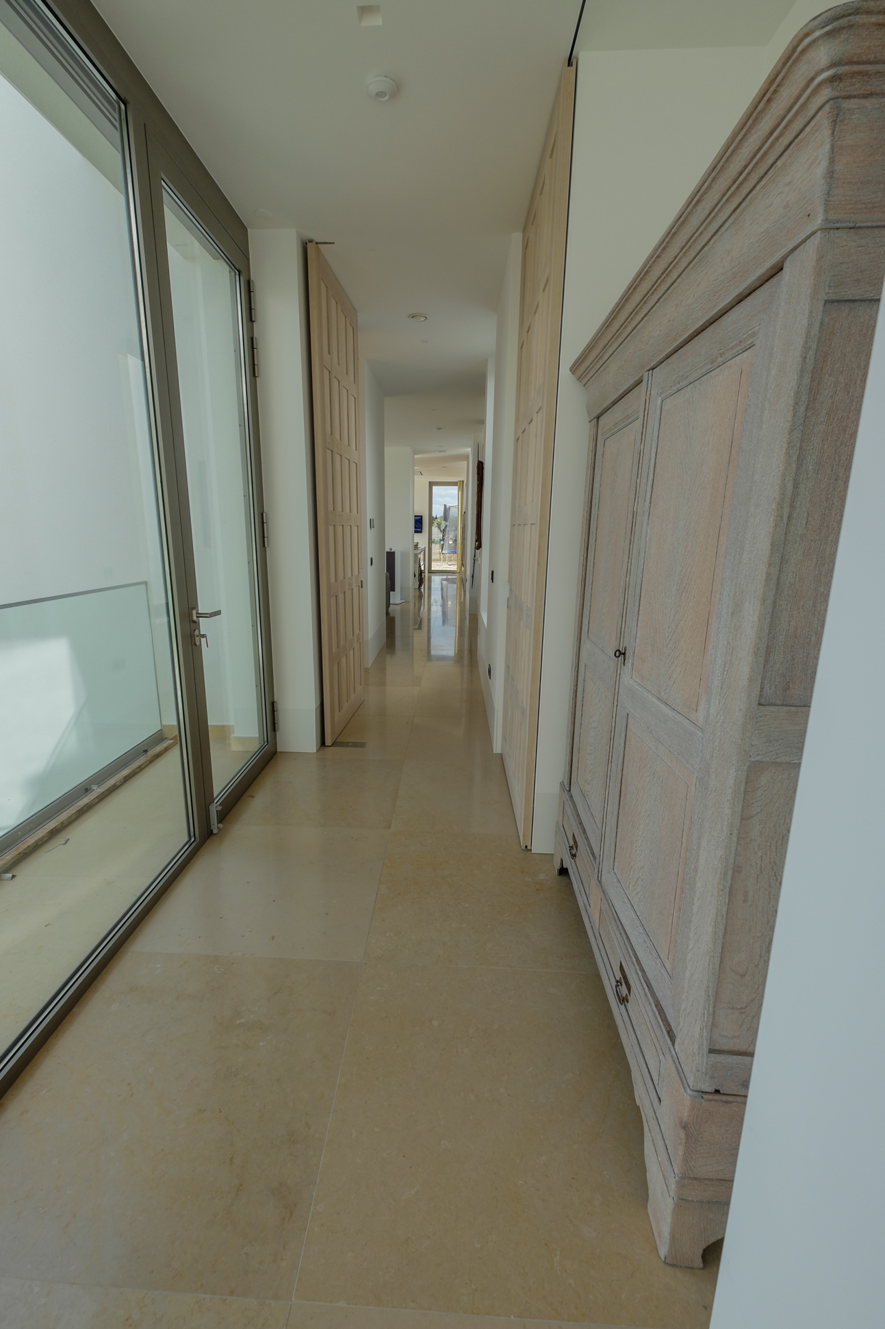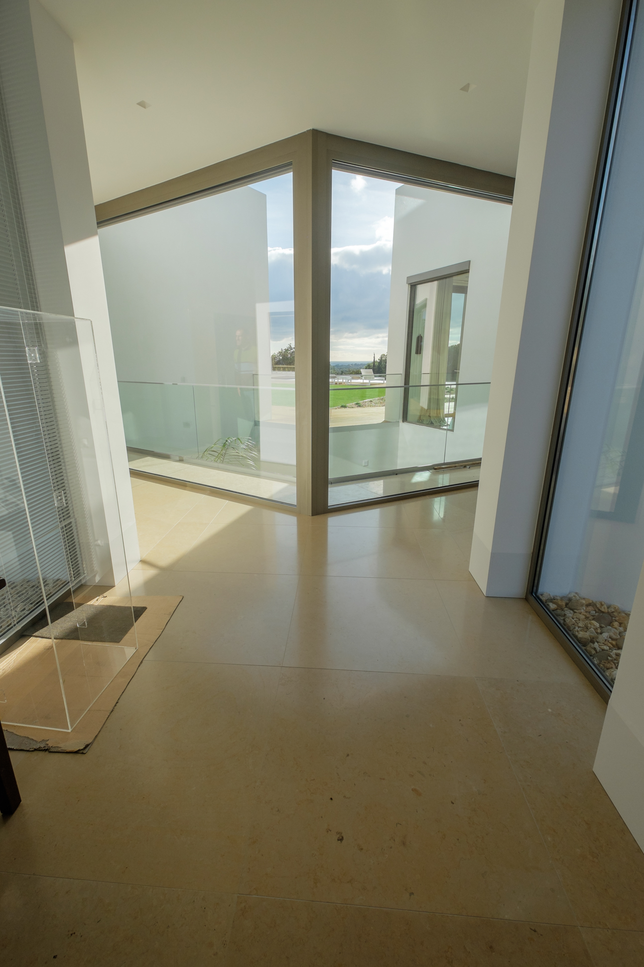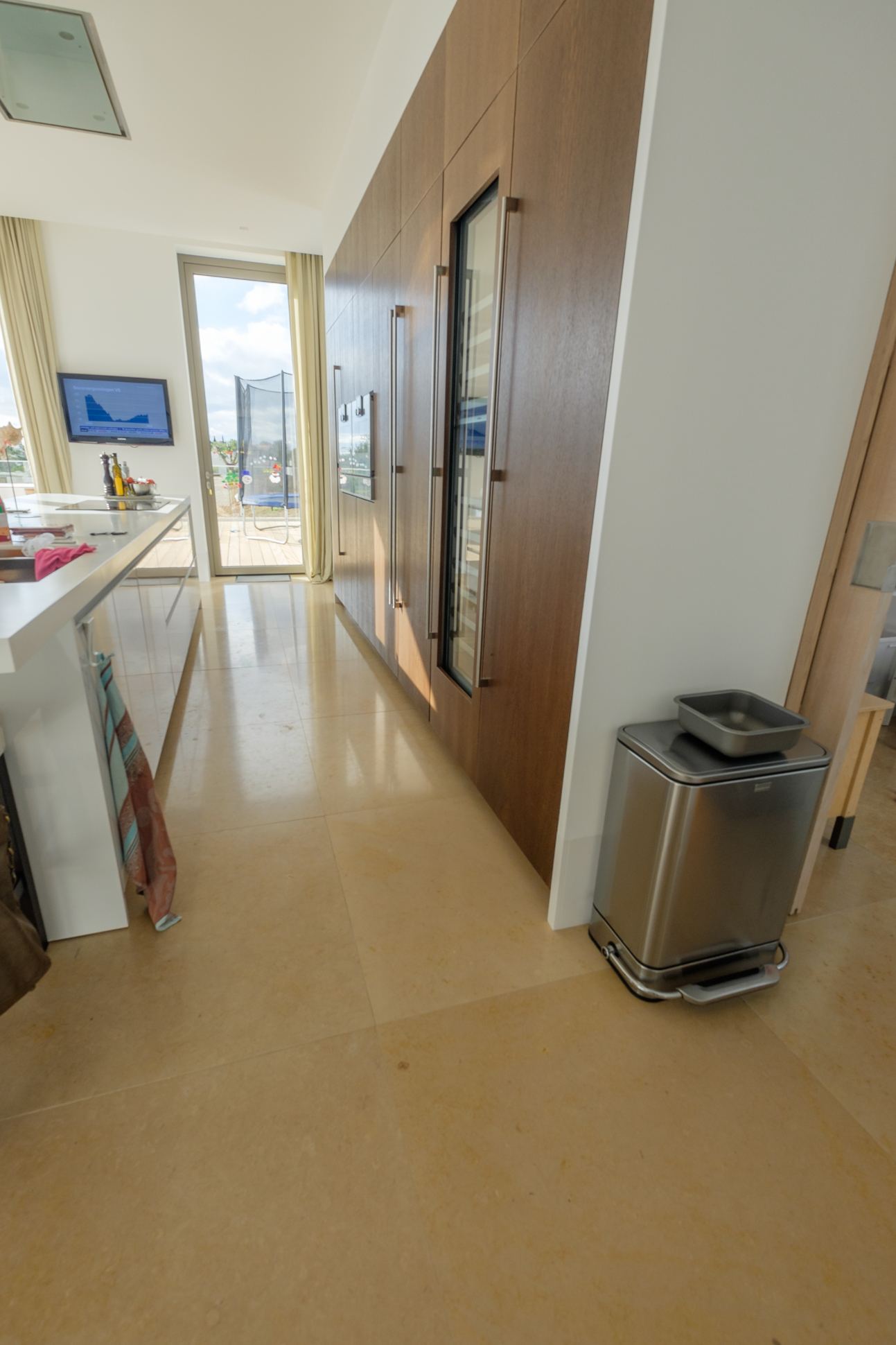 Ataija Coffee: a darker Ataija Cream. Limestone of high rigidity. For this project in the Algarve, we used flooring tiles of 900x900x20mm Honed finish.