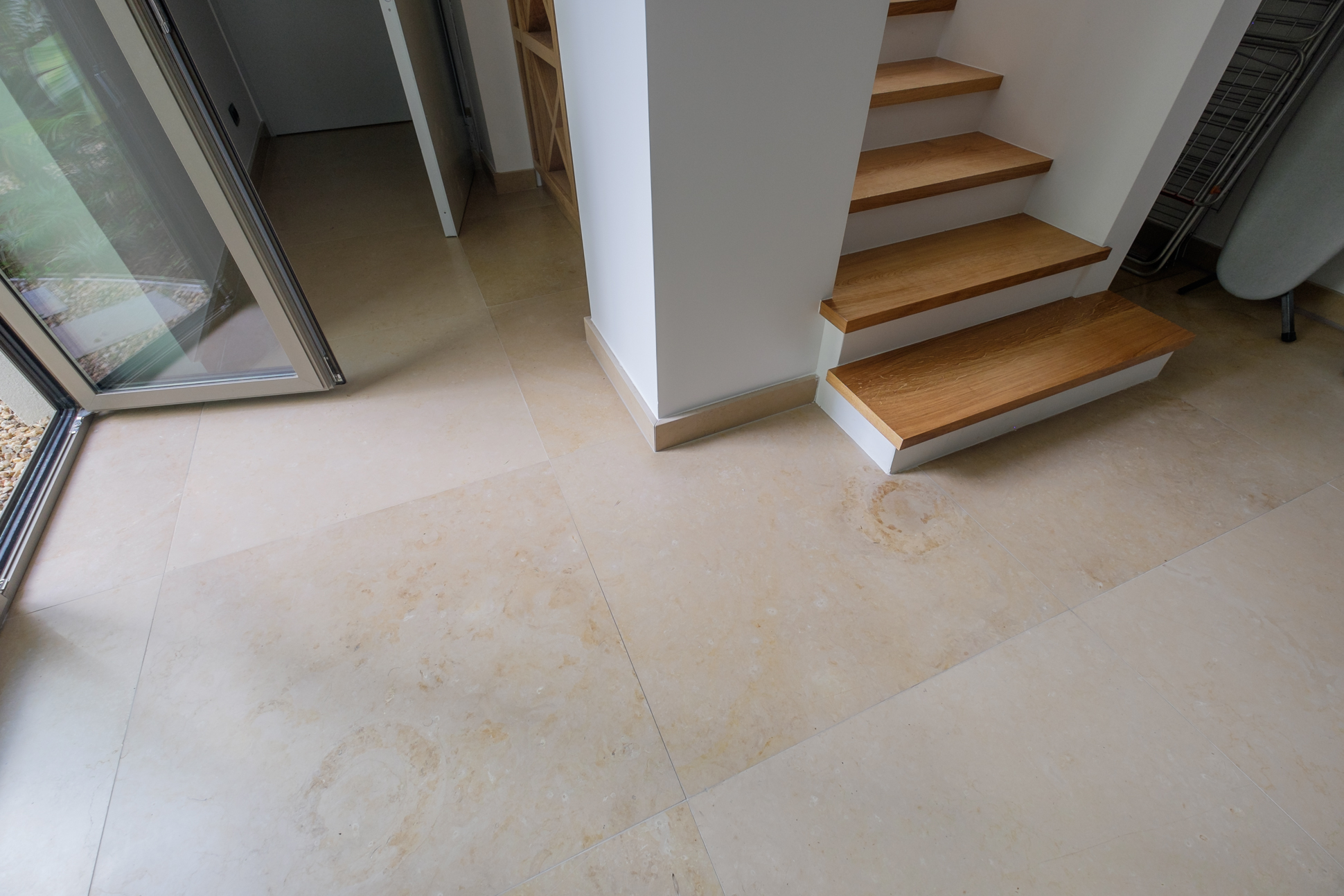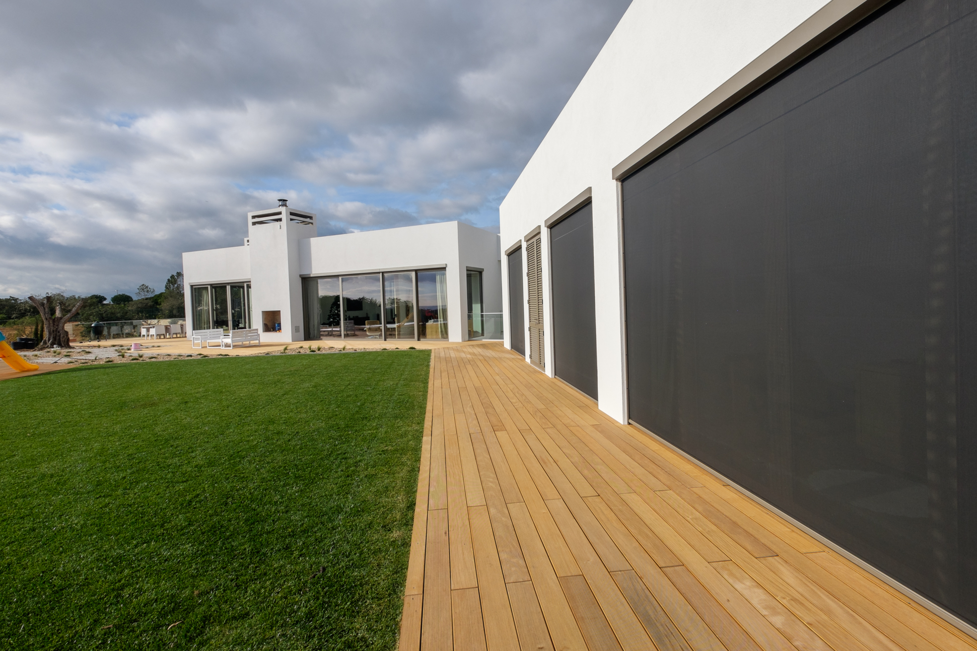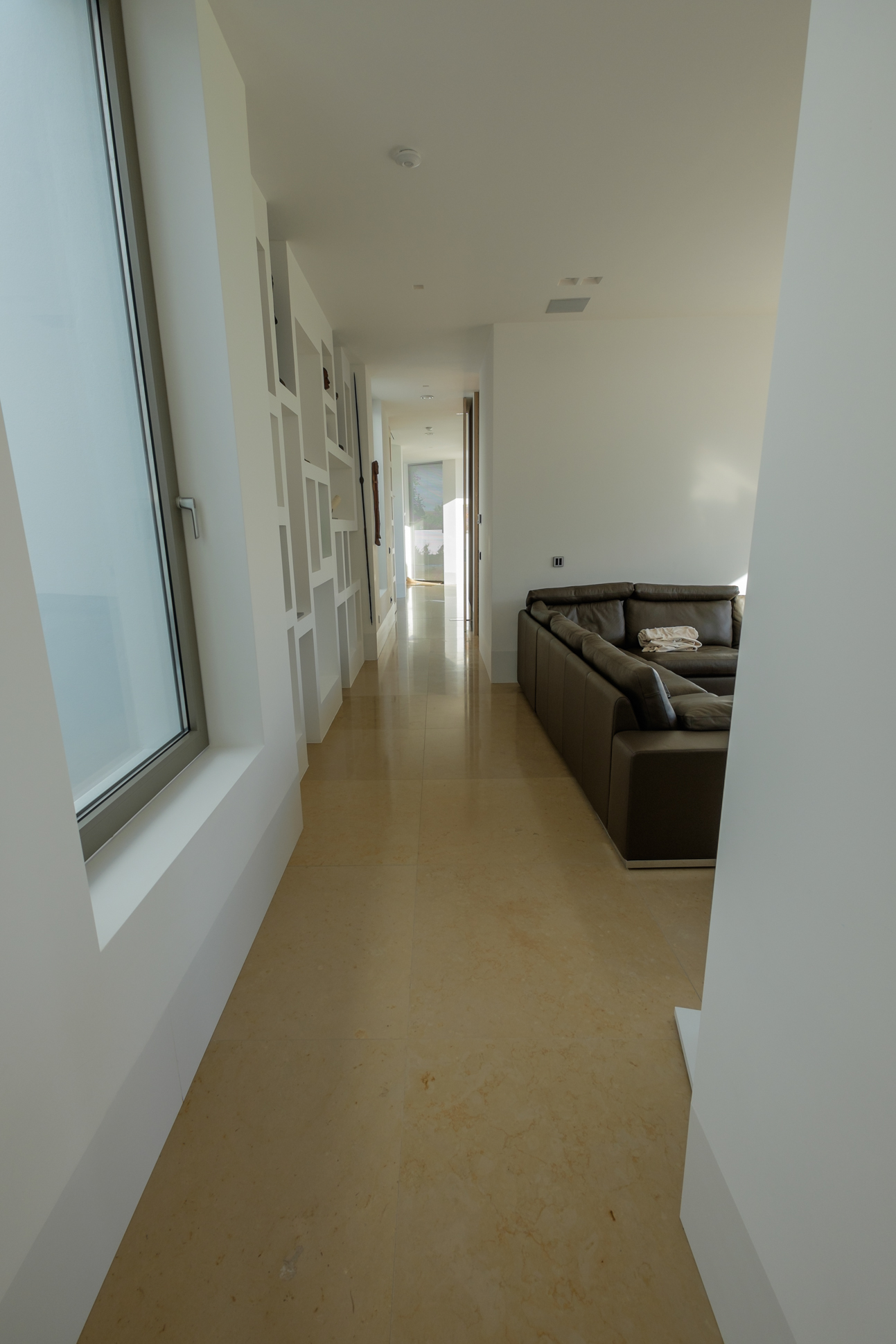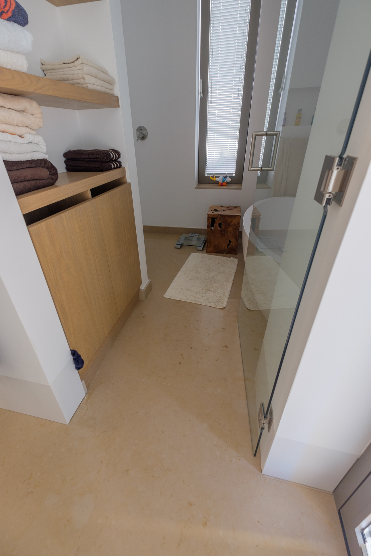 Ataija Coffee: a darker Ataija Cream. Limestone of high rigidity. For this project in the Algarve, we used flooring tiles of 900x900x20mm Honed finish.