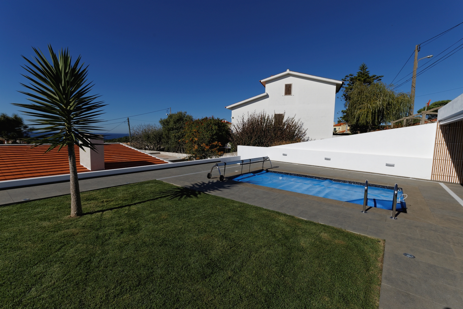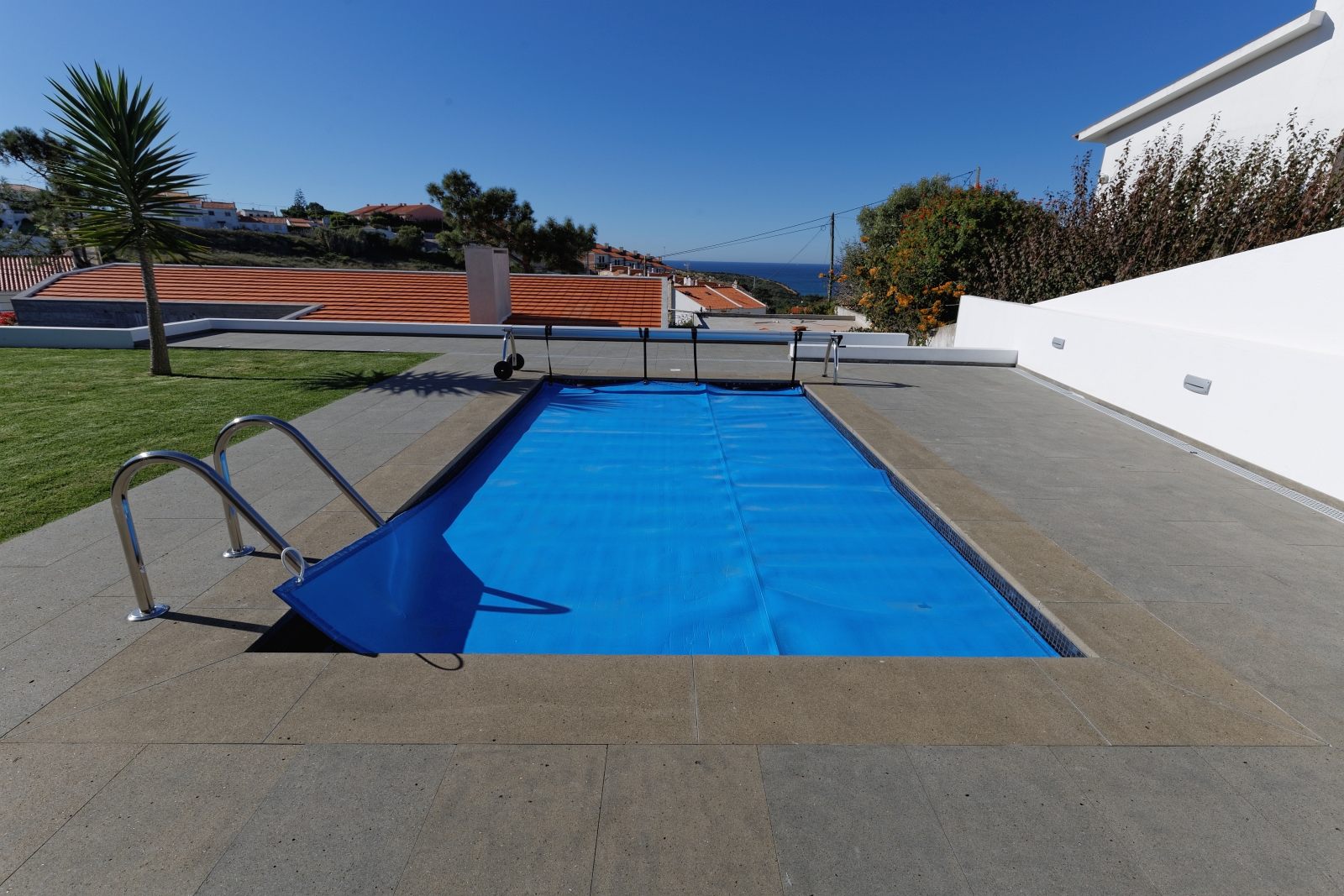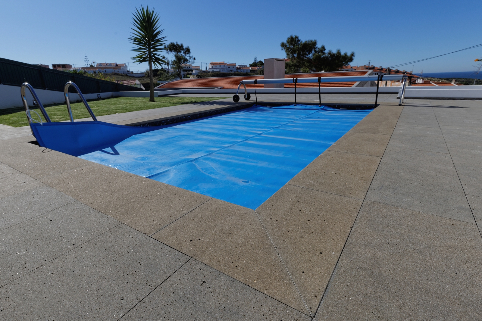 For this project of exterior swimming pool areas, we chose Portuguese Basalt for pavement, stairs, pool copings and barbecue in sawn and sandblasted finish.