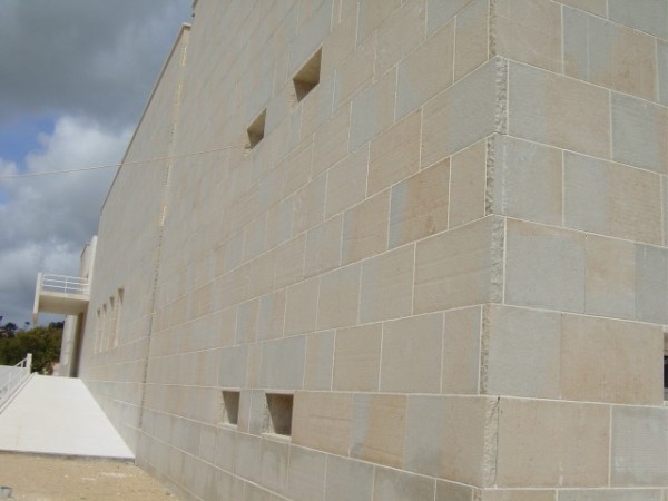Wall cladding in Portuguese limestone Ataija, Flamed finish.