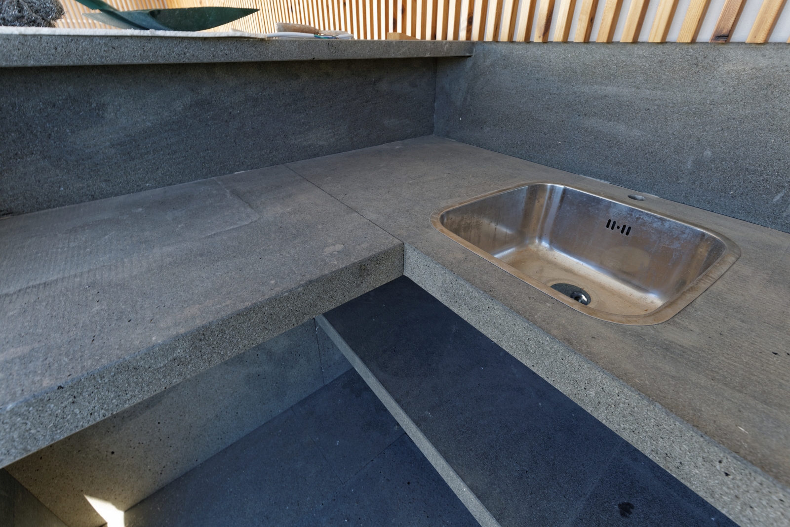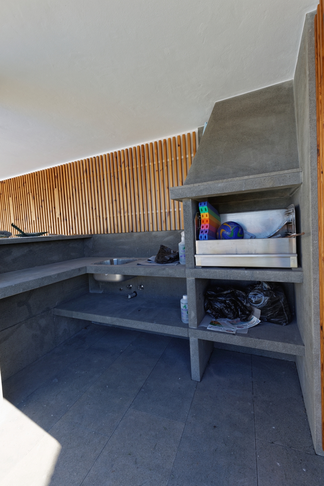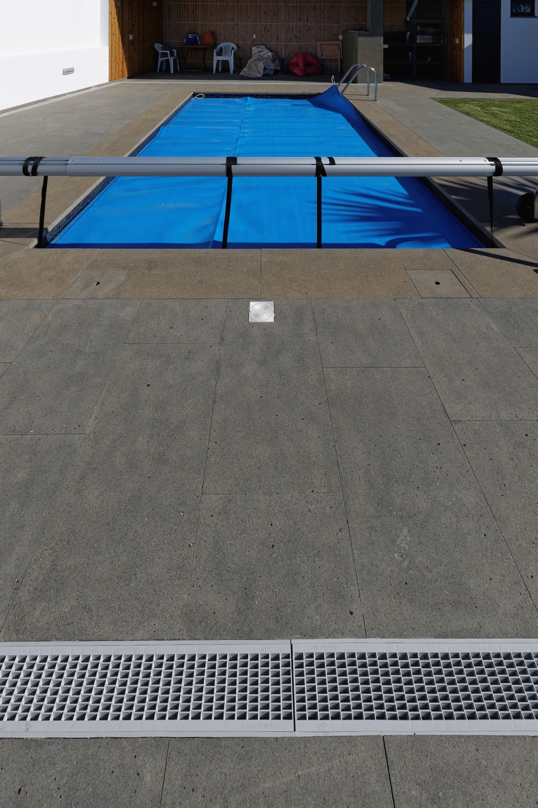 For this project of exterior swimming pool areas, we chose Portuguese Basalt for pavement, stairs, pool copings and barbecue in sawn and sandblasted finish.